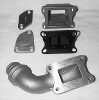 Aluguß, Vergaser sitzt in der Karosserie, bis 34 mm Vergasergröße. Auch eine 3 Loch Variante war erhältlich. |